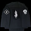 Комбинезоны с VOL 3 имели логотип Slipknot Star на груди, где были и козел, и баркод, эти комбинезоны темно-синие и они действительно крутые! на левой руке был номер участника.